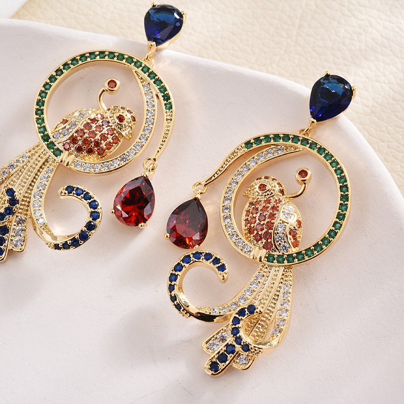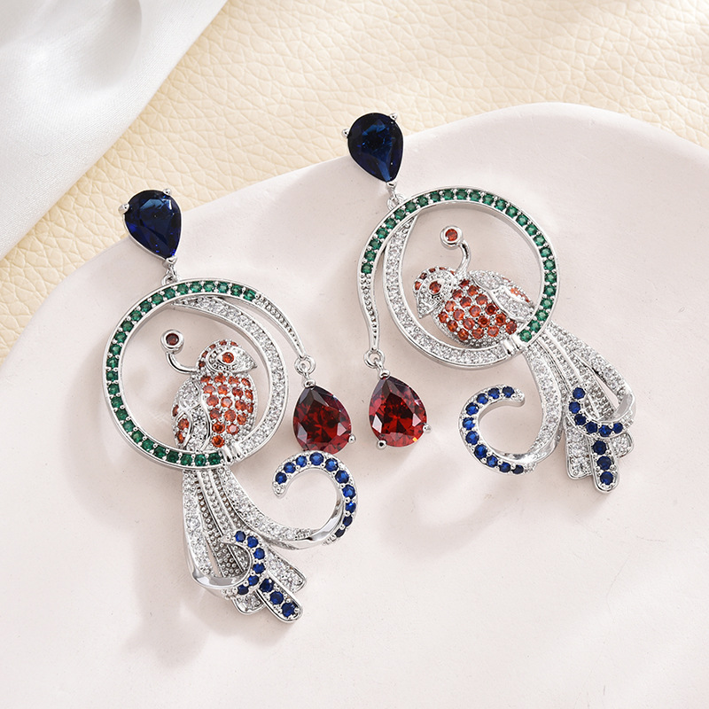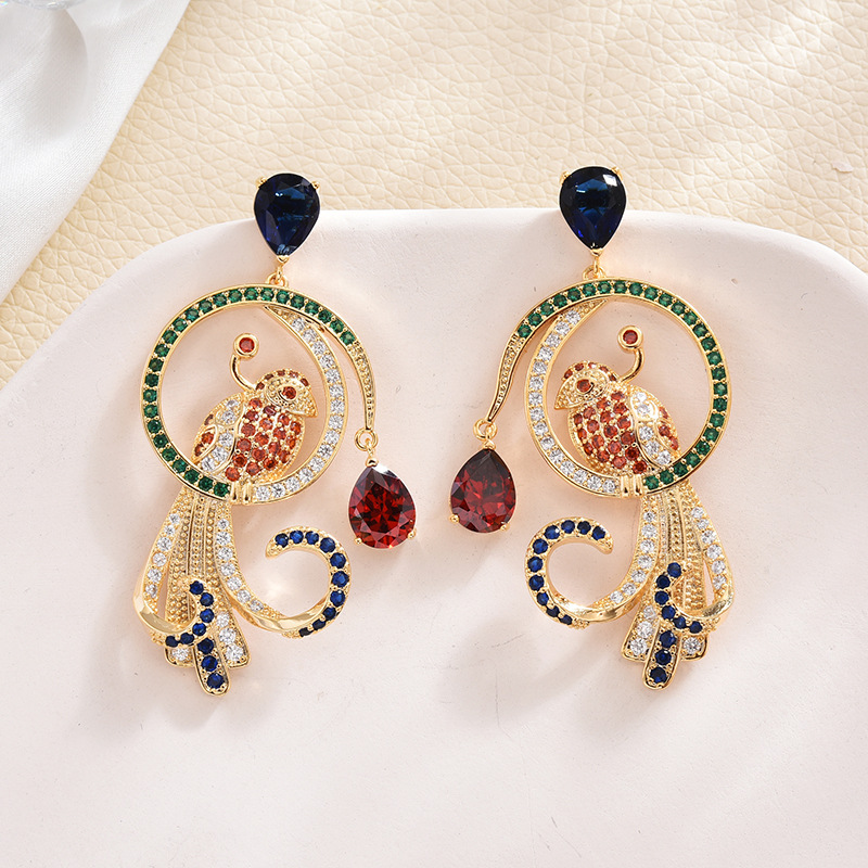 new retro fashion zircon S925 silver needle earrings color double bird circle earrings