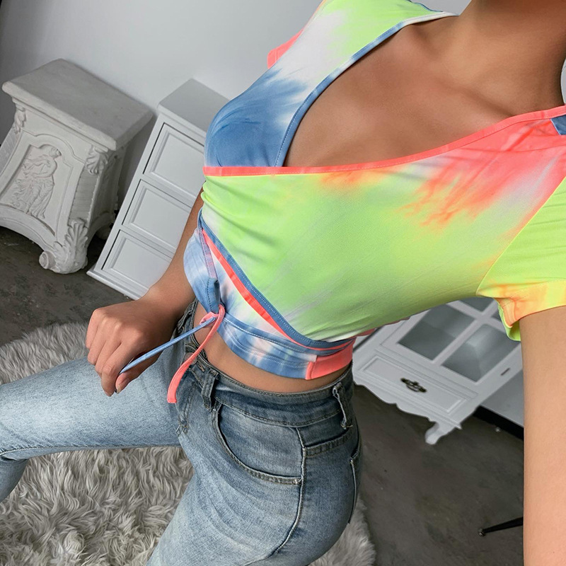 women new products fashion tie-dye all-match short-sleeved tie crop top T-shirt women